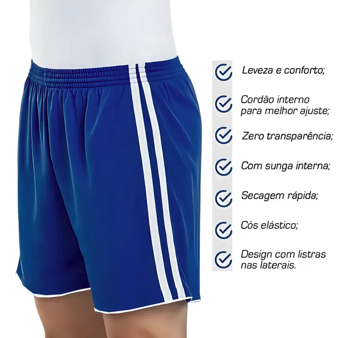 Short Masculino Azul - Calção Futebol Academia Bermuda Esportes